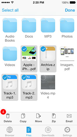 - Open files in other apps or share using AirDrop